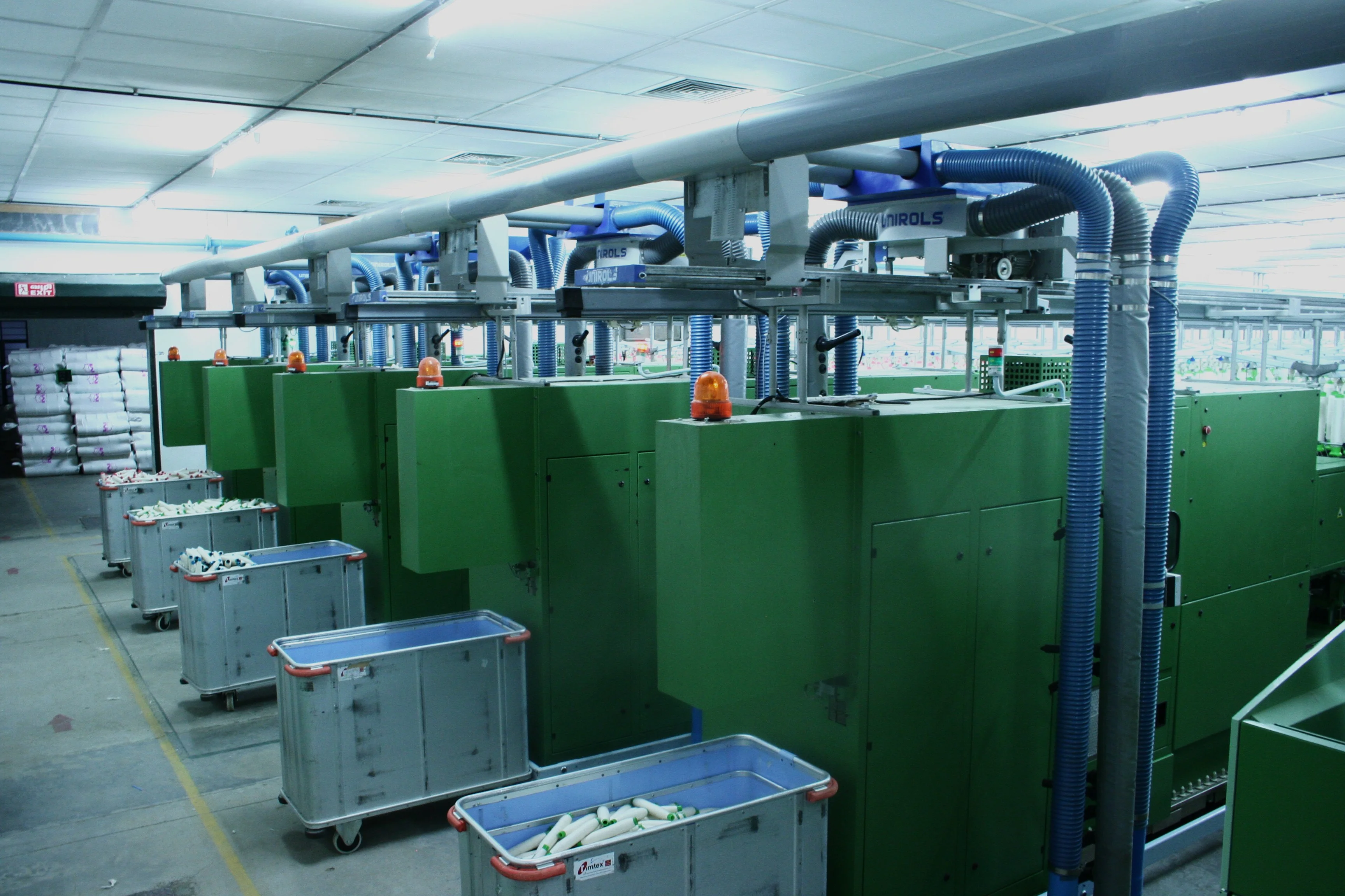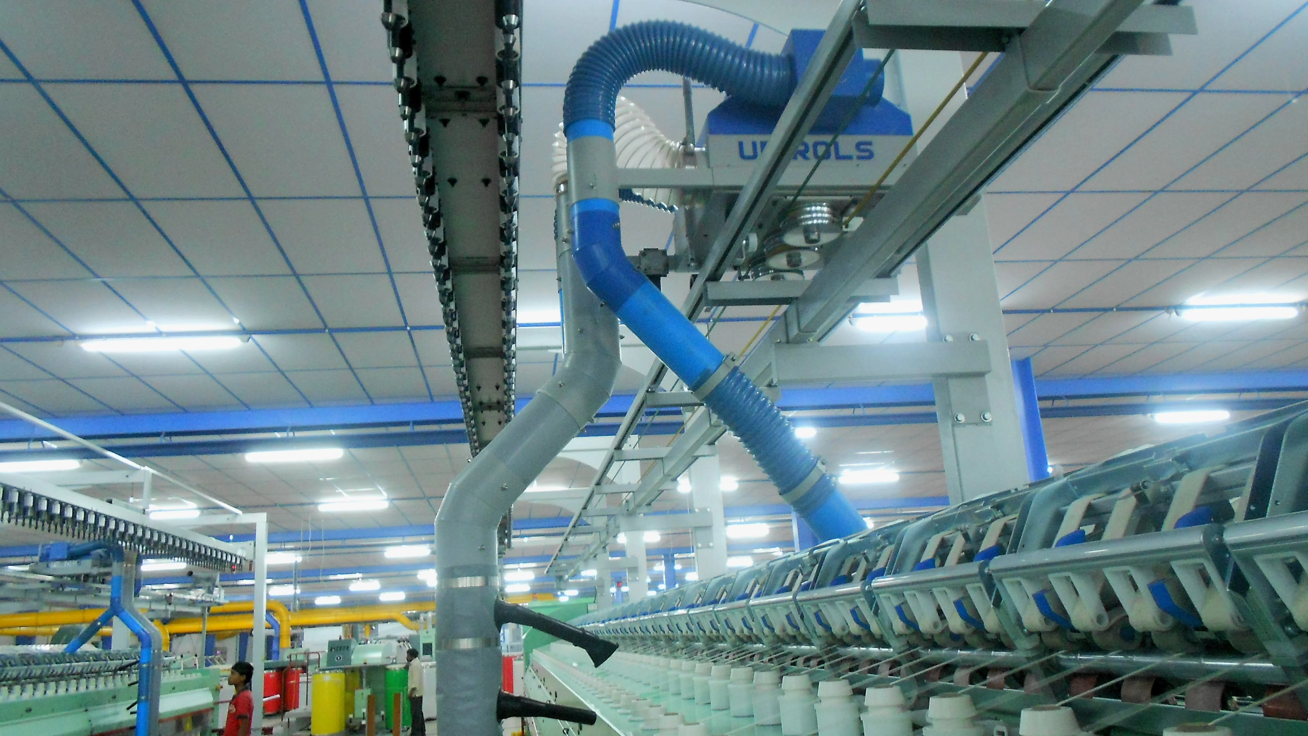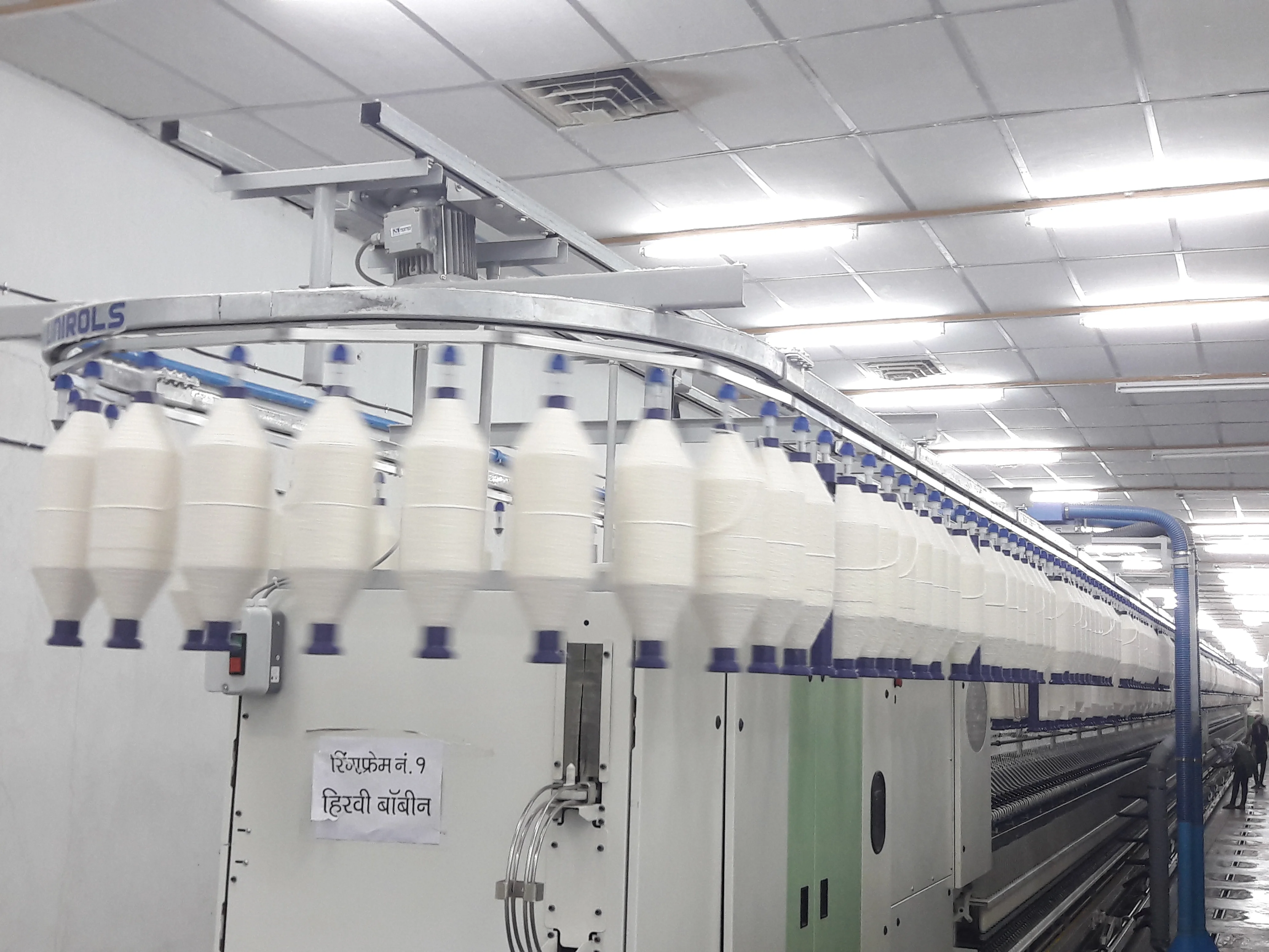 Our bobbin transport system helps to move bobbins from ROVING machines to individual spinning machines. Our system work on overhead rails and are tailor-made to suit individual requirements.