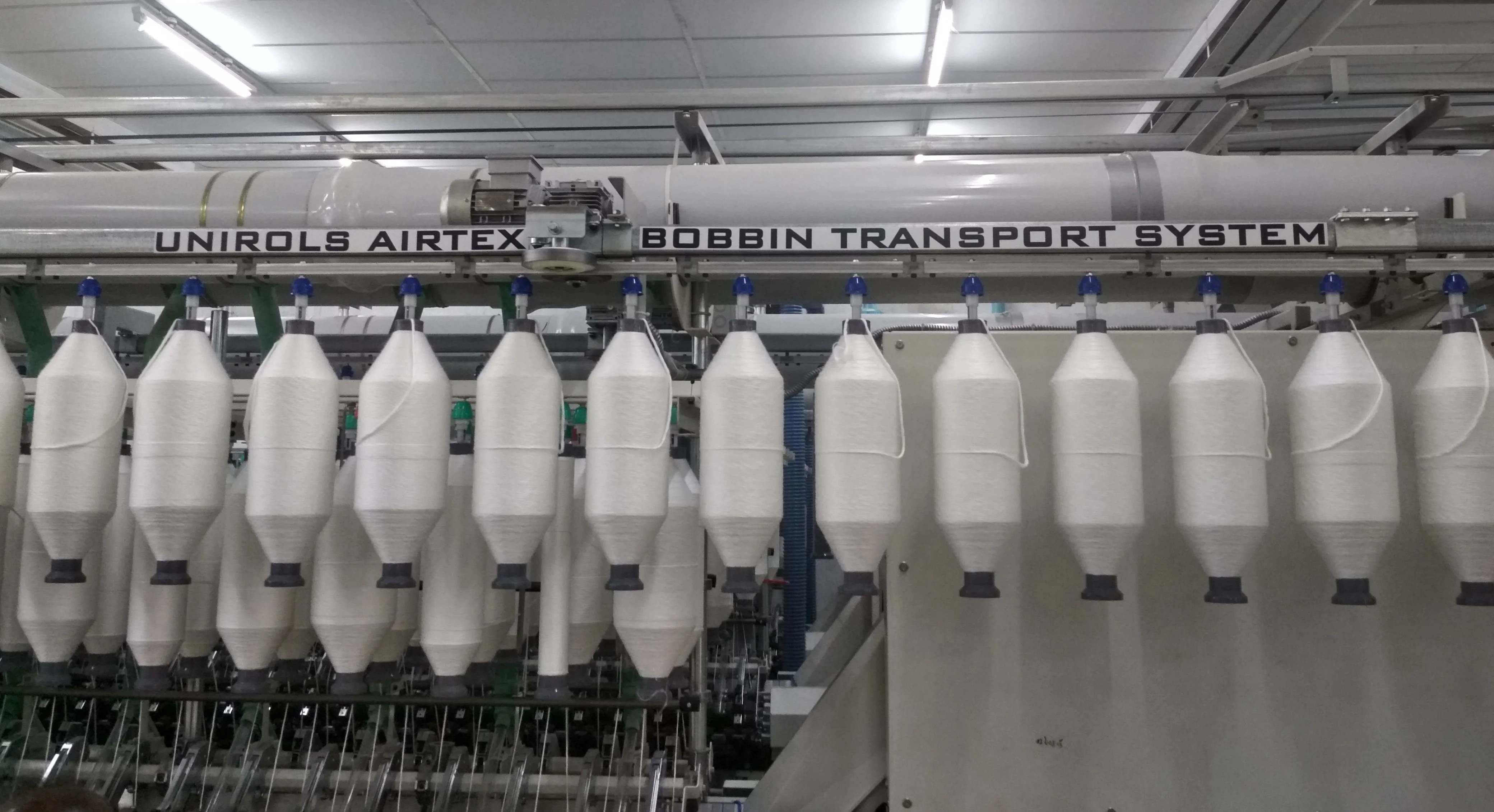 Our bobbin transport system helps to move bobbins from ROVING machines to individual spinning machines. Our system work on overhead rails and are tailor-made to suit individual requirements.